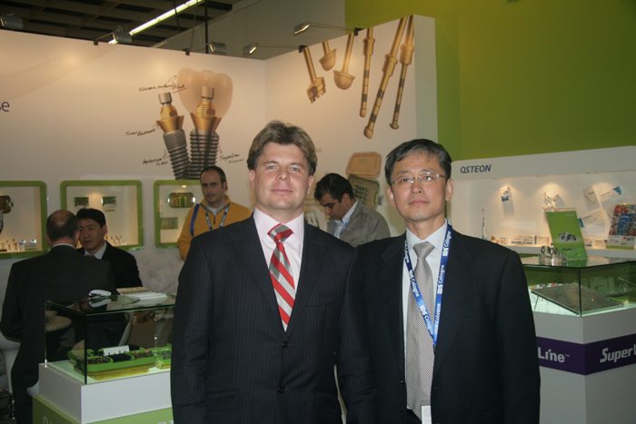 Д-р Венцеслав Ралев (вдясно) и д-р Сунг-Мин Чунг (вляво). Все пак на горната снимка е очевидно кой от двамата е роден в Източна Европа и кой - в Южна Корея. Снимката е направена по време на Международното изложение в Кьолн през 2009 година, скоро след като Ралев Дентал АД започна внос на зъбни импланти от сериите Implantium и Superline. По това време д-р Чунг беше изпълнителен директор на Дентиум ООД (въпреки че дружествата с ограничена отговорност по закон имат управител, а не изпълнителен директор). По професия д-р Чунг е зъболекар със специалност пародонтология; д-р Венцеслав Ралев по професия е зъболекар със специалност Лицево - челюстна хирургия. Скоро след изложението д-р Чунг се оттегли от поста си за заслужен отдих след добре изпълнена мисия - да се основе и утвърди международна компания от голям мащаб в областта на медицината. Д-р Венцеслав Ралев продължи да се бори против Световната Финансова Криза и за момента не планира оттегляне от сектора предвид многото креативни идеи, които предстои да бъдат реализирани, но това е друга тема... През 2010 година Дентиум вече заемаше позиция сред десетте водещи производители на имплантати в световен мащаб.